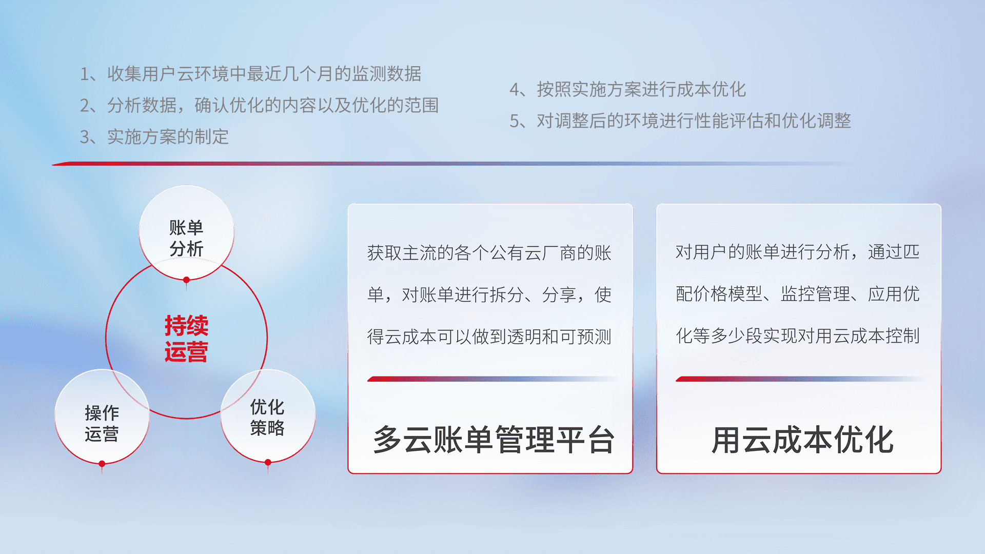 运用智能化工具分析云资源,,提供日常费用可视化工具,,,,自动账单拆分,,,成本优化云上费用,,,,降本增效。。。